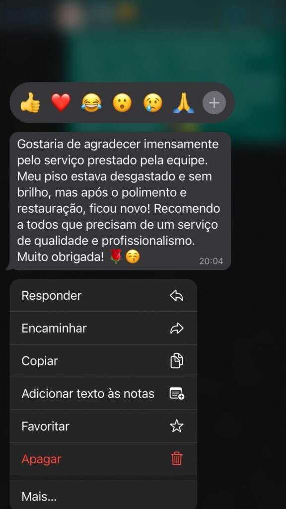 Realçamos a beleza original de suas superfícies, devolvendo brilho e uniformidade ao acabamento. Nosso polimento é ideal para mármores, granitos, porcelanatos e outras superfícies nobres, garantindo um resultado impecável e duradouro. Redescubra a sofisticação do seu ambiente com o cuidado de quem é referência no mercado.